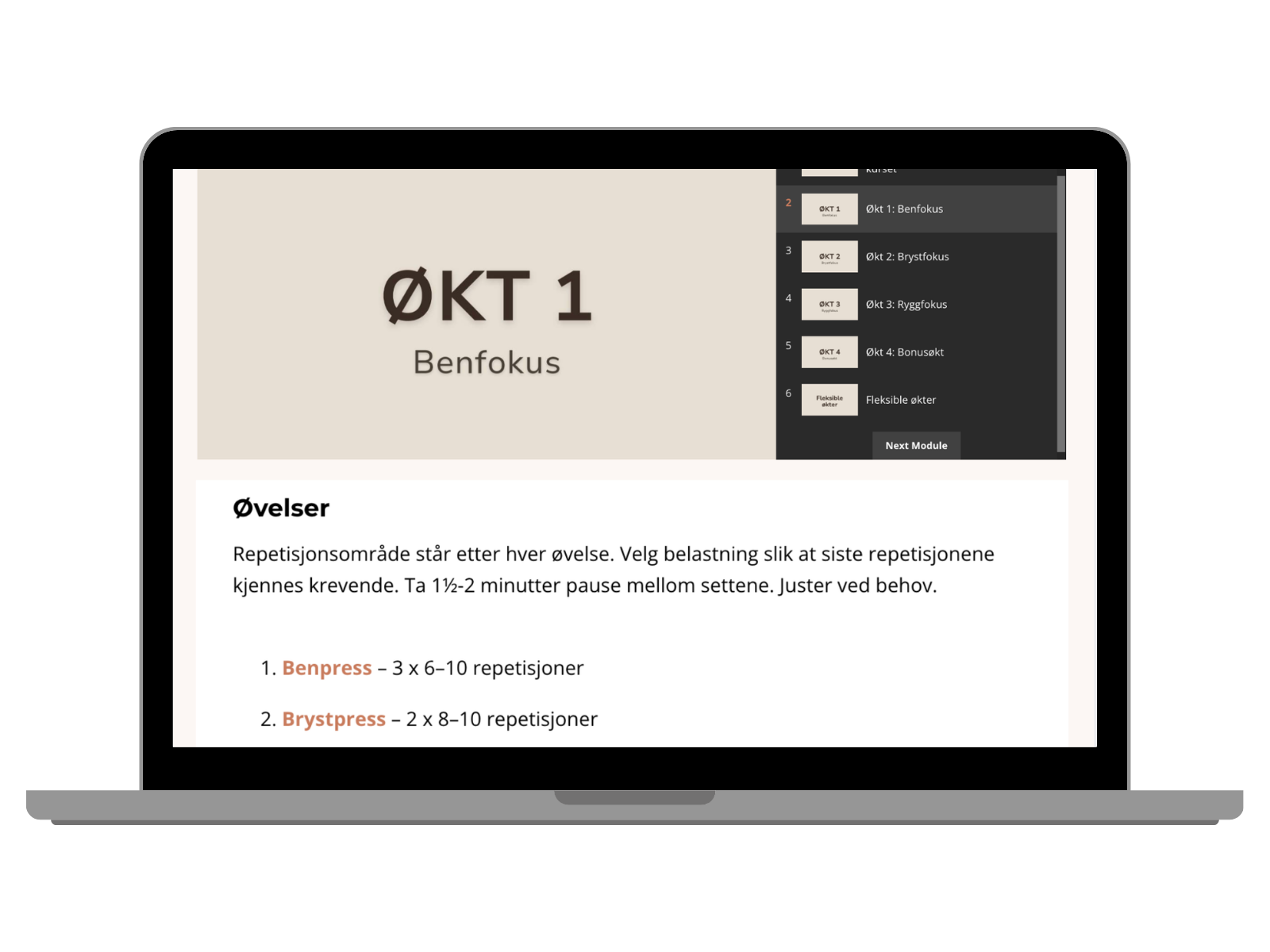 Forklaringer og videoer som gjÞr treningen enkel Ä gjennomfÞre.