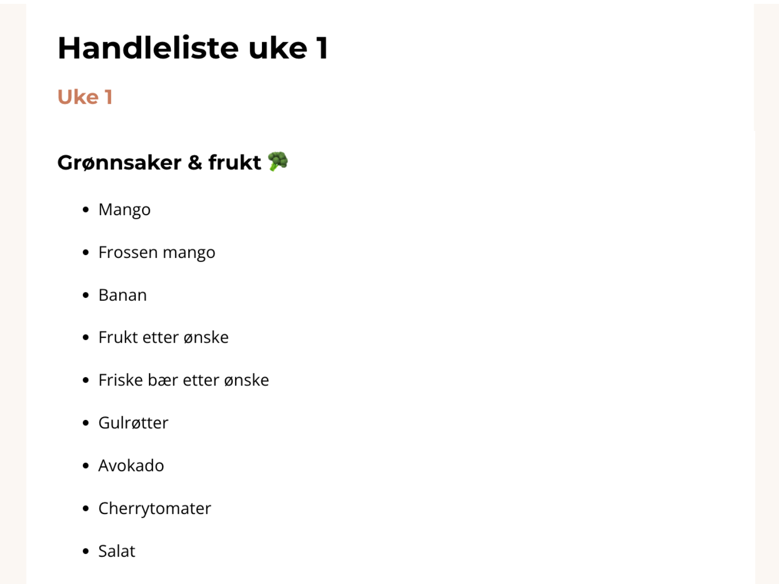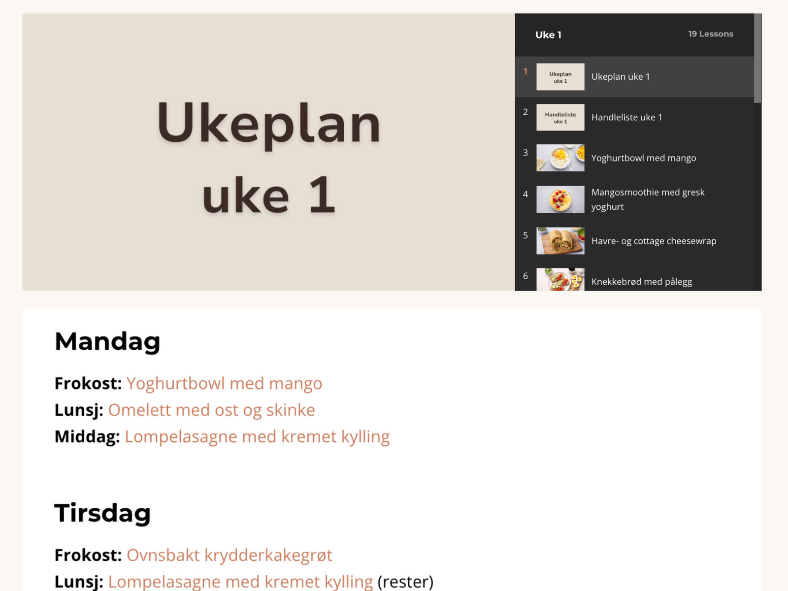 Ukentlige matplaner og handlelister